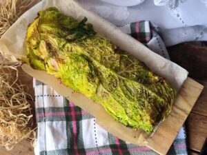 Si tratta di un rotolo dove le foglie di verza avvolgono un ripieno morbido a base di patate e prosciutto cotto. È un piatto che si può gustare sia caldo che freddo e si può tranquillamente preparare con largo anticipo, anche in friggitrice ad aria.