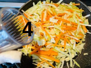 Saltatele per qualche minuto e poi aggiungete un bicchiere d’acqua (4).